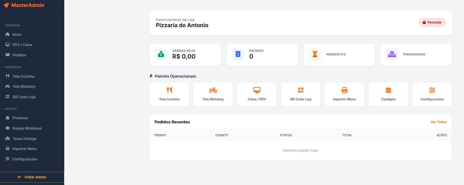 ● Gestão de Loja: Botão "Abrir/Fechar" loja em tempo real e definição de horário de